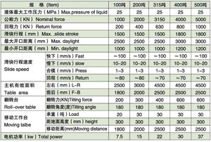 1、本系列机器可根据用户十面需要选用四柱式机型或框架式机型。